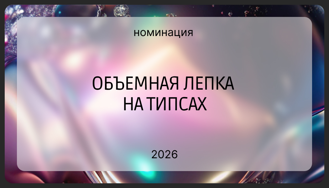 Для участия в конкурсе мастер должен создать любую трехмерную композицию на типсах в технике объёмной лепки (гель /акрил)